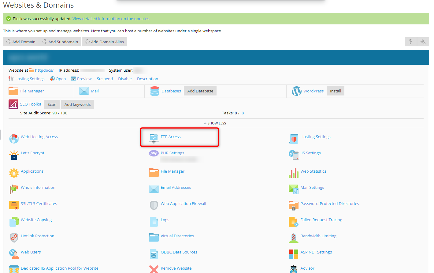 1. Login to Plesk Admin https://IPAddress:8443 or https://hostname:8443