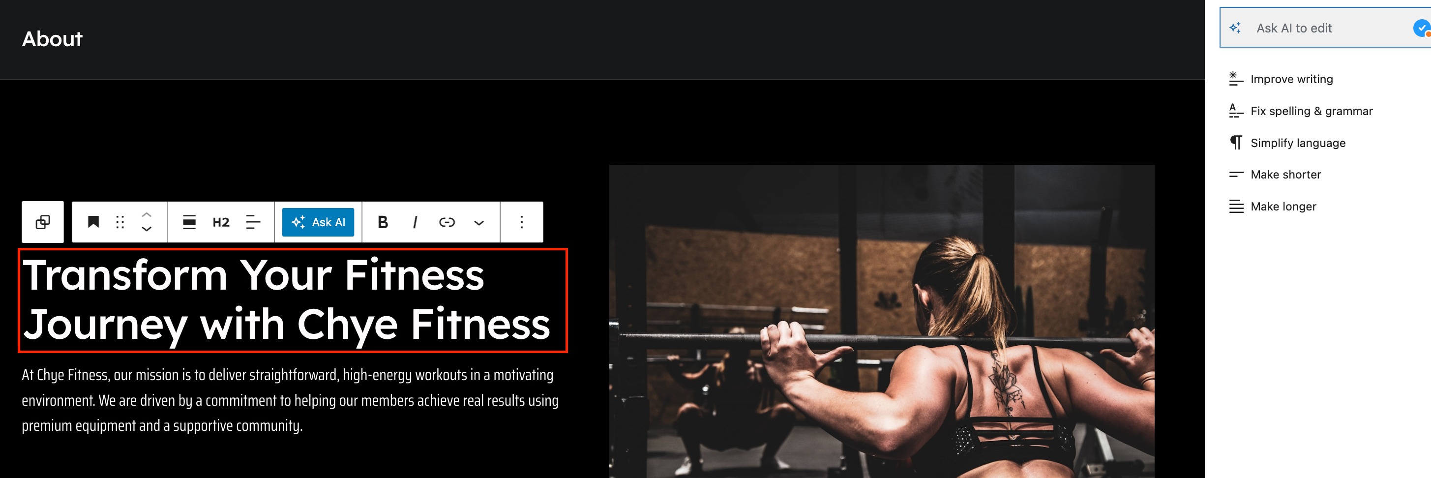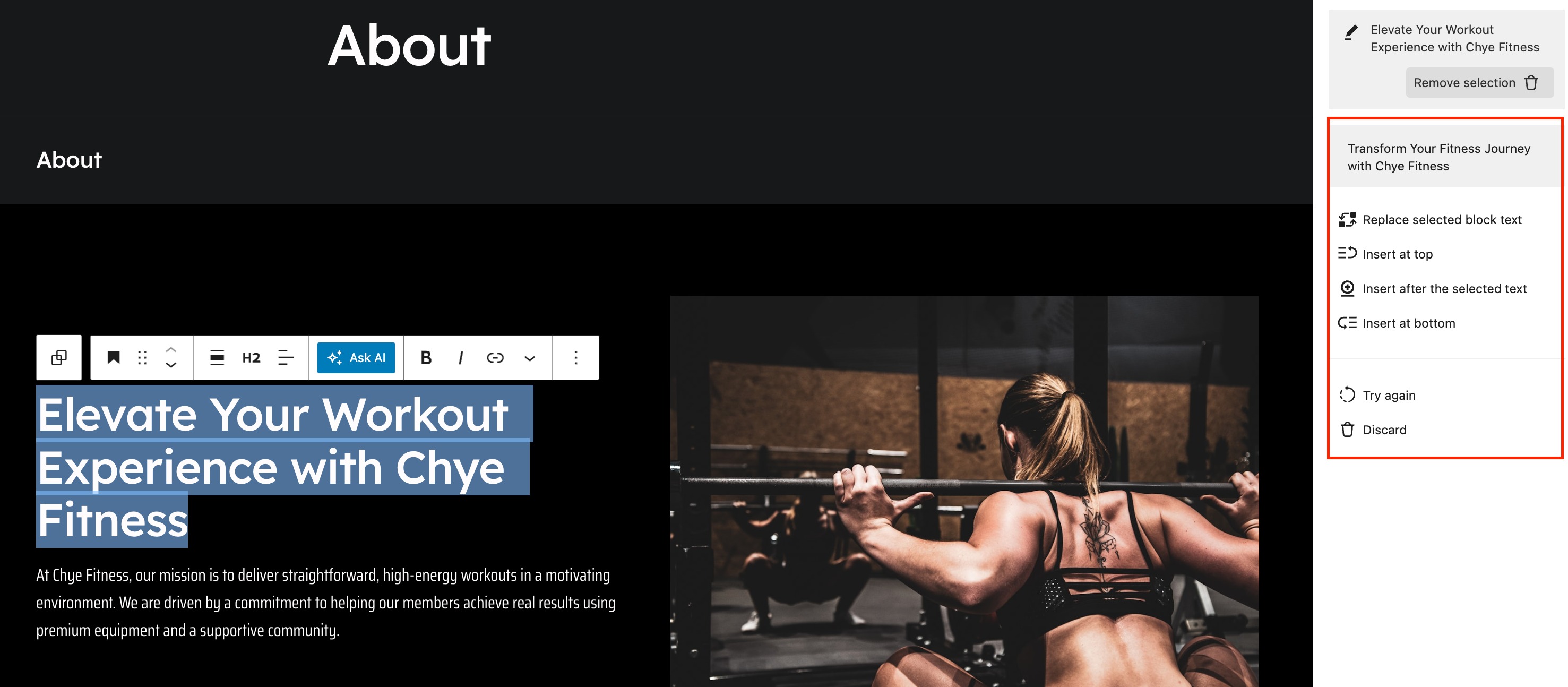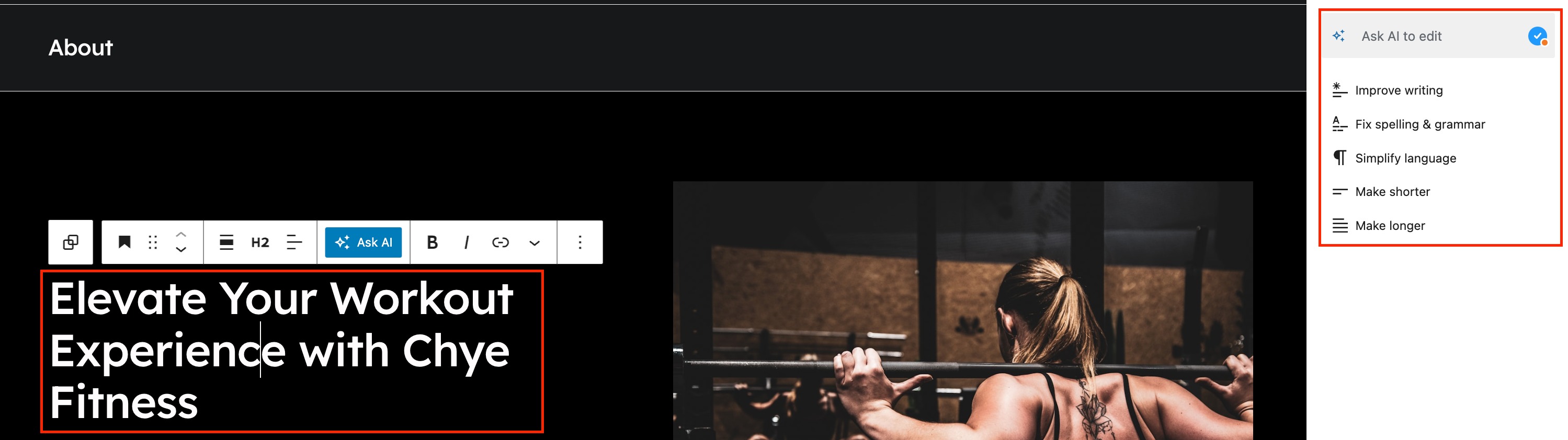 1. Highlight the desired text block and then select the action you want the AI to perform.